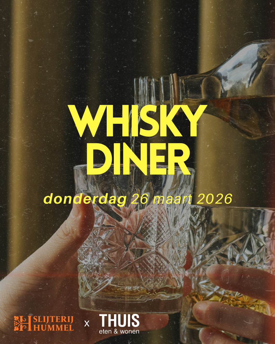 Koop hier je ticket voor het whisky diner op donderdag 26 maart 2026, in samenwerking met slijterij Hummel.