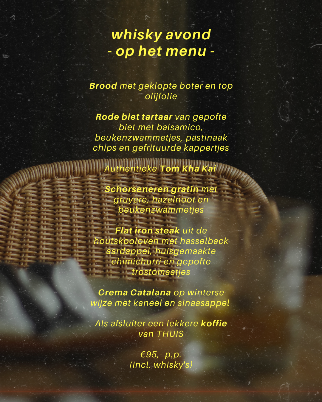Menuprijs is inclusief whisky’s.